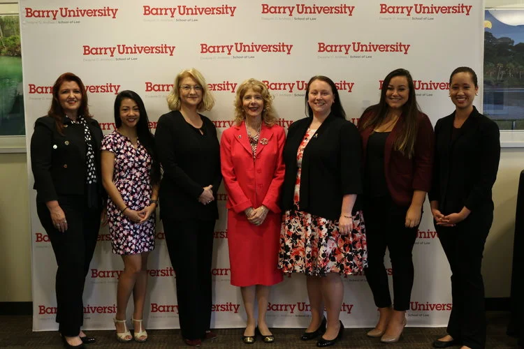 2017-18 Fellows Arlene Cuellar & Kathryn Avila; CEJ’s Associate Director; Barry Law Dean Leticia Diaz; CEJ’s Director Margaret Stewart; and 2017-18 Fellows Samantha Koempel & Lizaida Guadalupe.